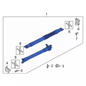 F-150. Single piece drive shaft. 4wd. 122 wheelbase. 5.0l. 1 piece drive shaft, 122 wheelbase, 4wd, 5.0 ltr, 9.75 axle. 2 Piece Rear Driveshaft. Ring Gear 9.75".