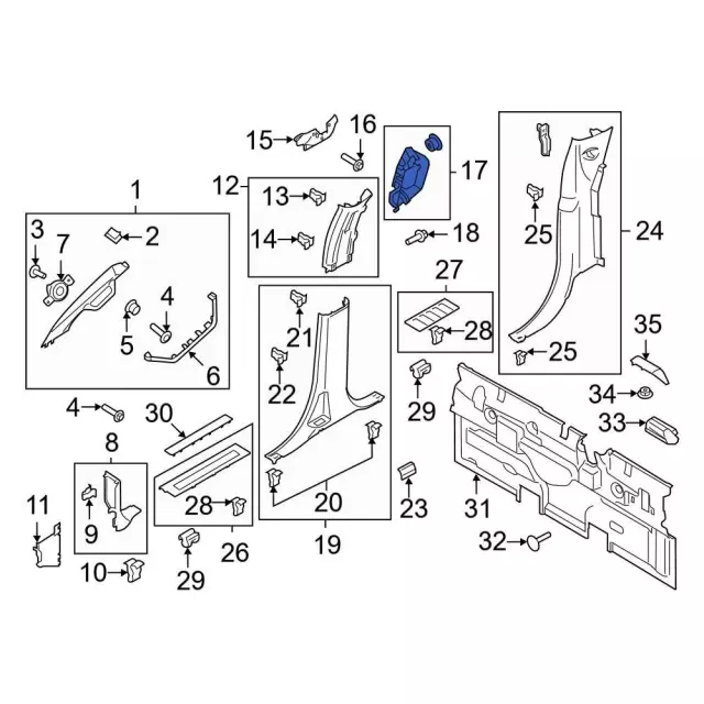 Center pillar, black. Crew cab, side trim.