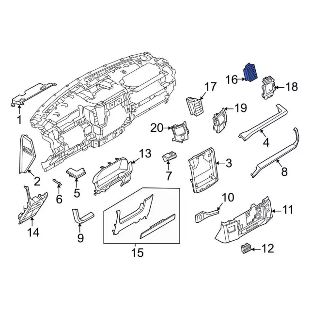 With flow through console, instrument panel, outer. 2021-23, instrument panel, outer.