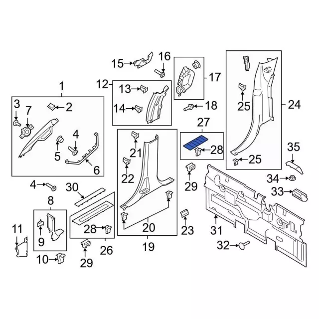 Crew cab, side & rear trim, rear, slate. Rear pillar, slate. Crew cab, side & rear trim, rear, limited.