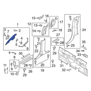 Super cab, side & rear trim, 8 speaker audio, slate. Crew cab, side & rear trim, 8 speaker audio, slate. Front pillar, 8 speaker audio, slate. Super cab, side & rear trim, xlt or lariat, 8 speaker, light slate. Crew cab, side & rear trim, xlt, lariat, 8 speakers, light slate. Crew cab, side & rear trim, xlt or lariat, 8 speaker, light slate.